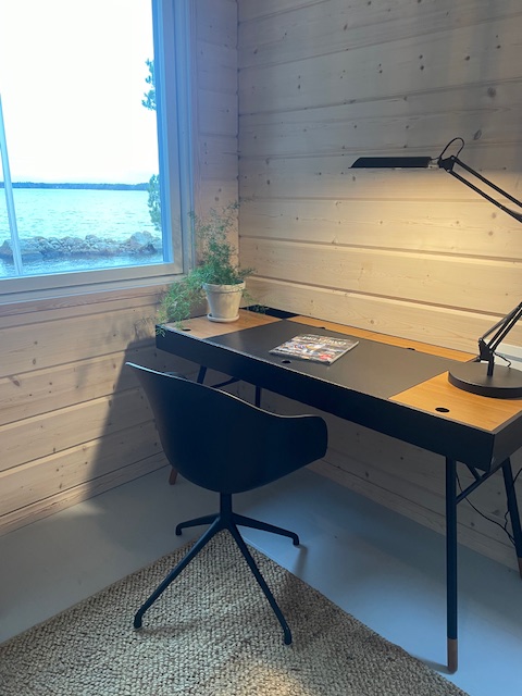 Villa Merikodossa etätyö sujuu vaivattomasti! Langaton netti ja mukava työpiste takaavat tehokkaan työpäivän – ja tauolla voit hengittää raikasta meri-ilmaa.
